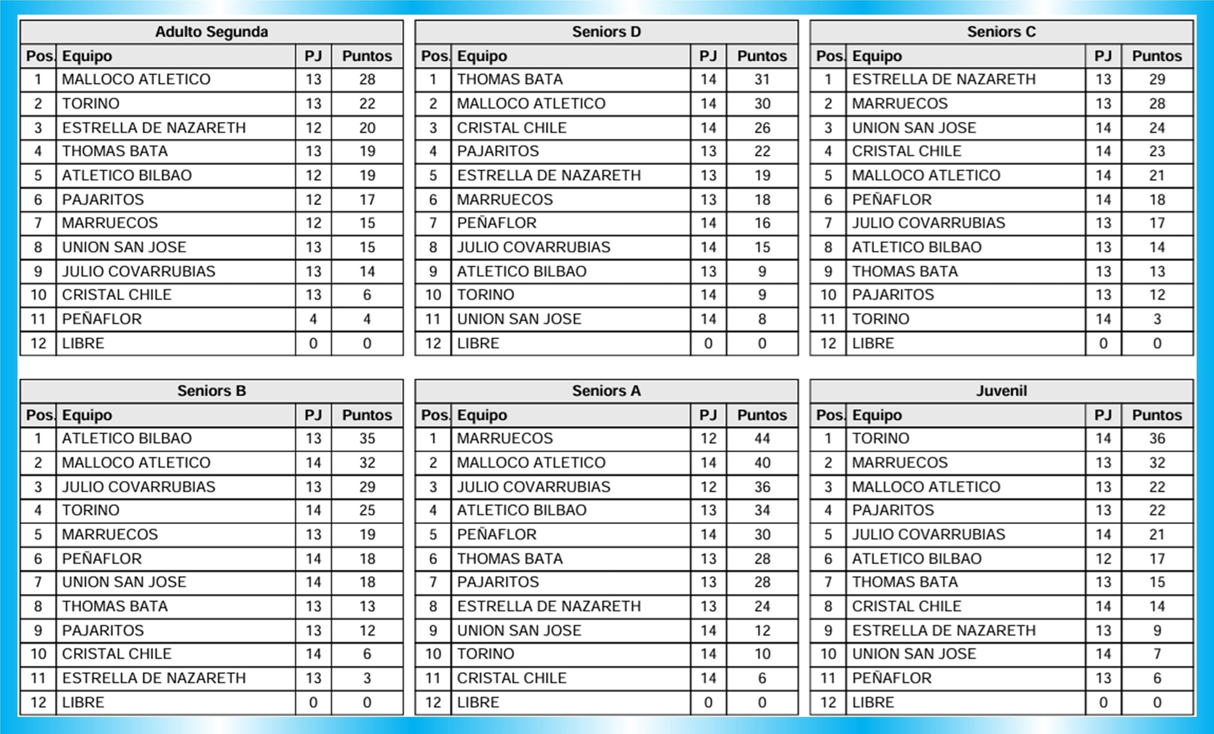 Total, jornada: 31 puntos para Malloco Atlético y 7 puntos para Unión San José.