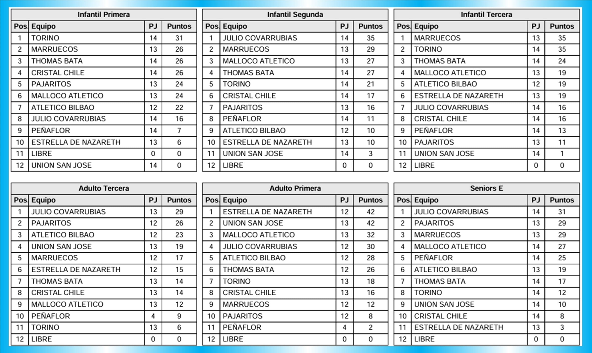 Resultados series sénior: