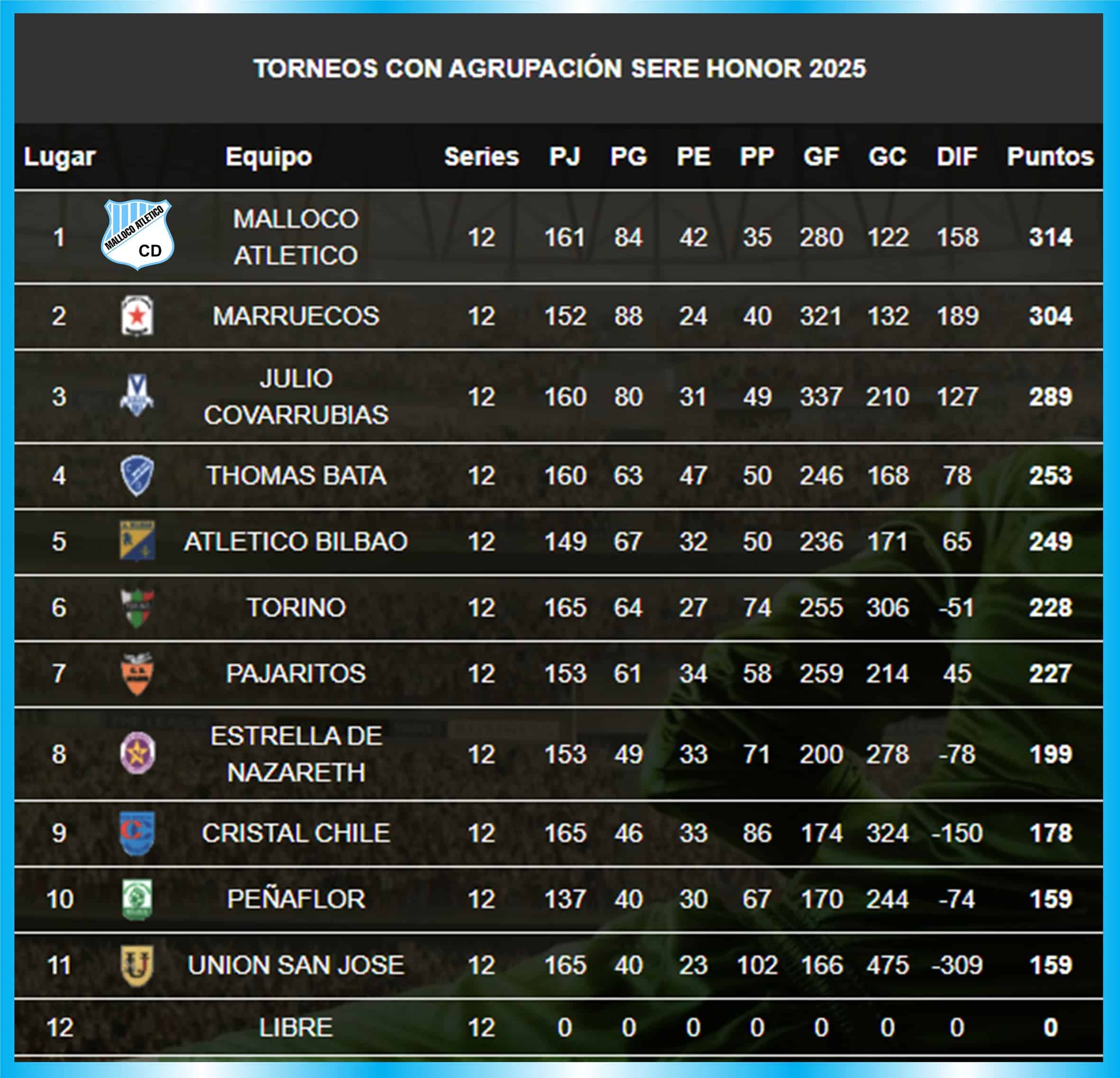 12 puntos para Malloco Atlético y cero para el local.